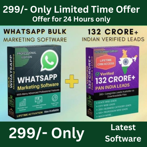 Bulk WhatsApp sender + Group Sender + Autobot + 150+ CR Database + Free Bonus Worth 20,000/-